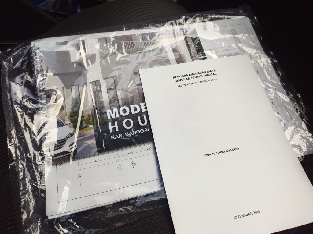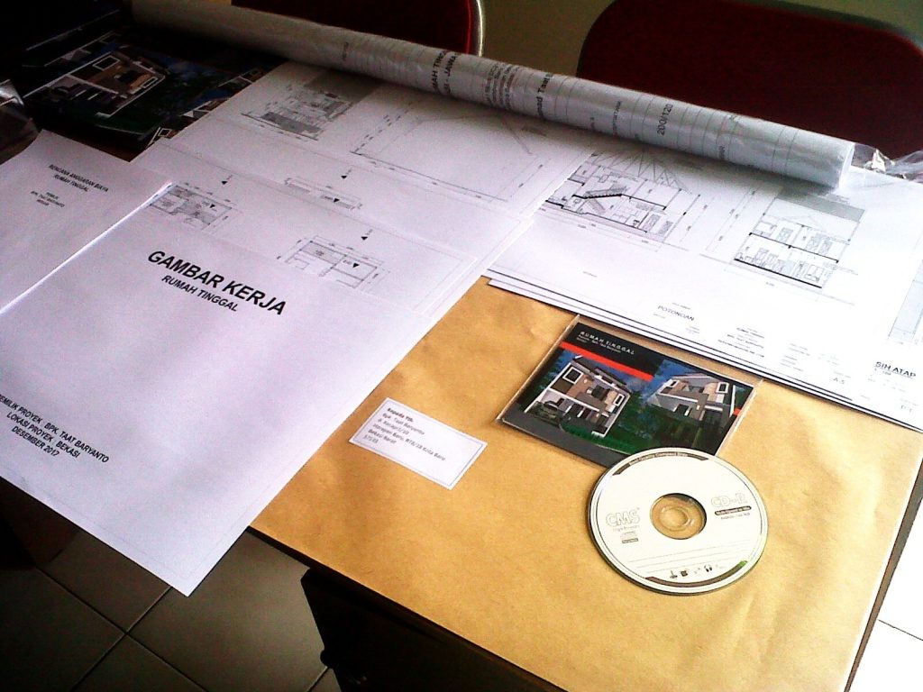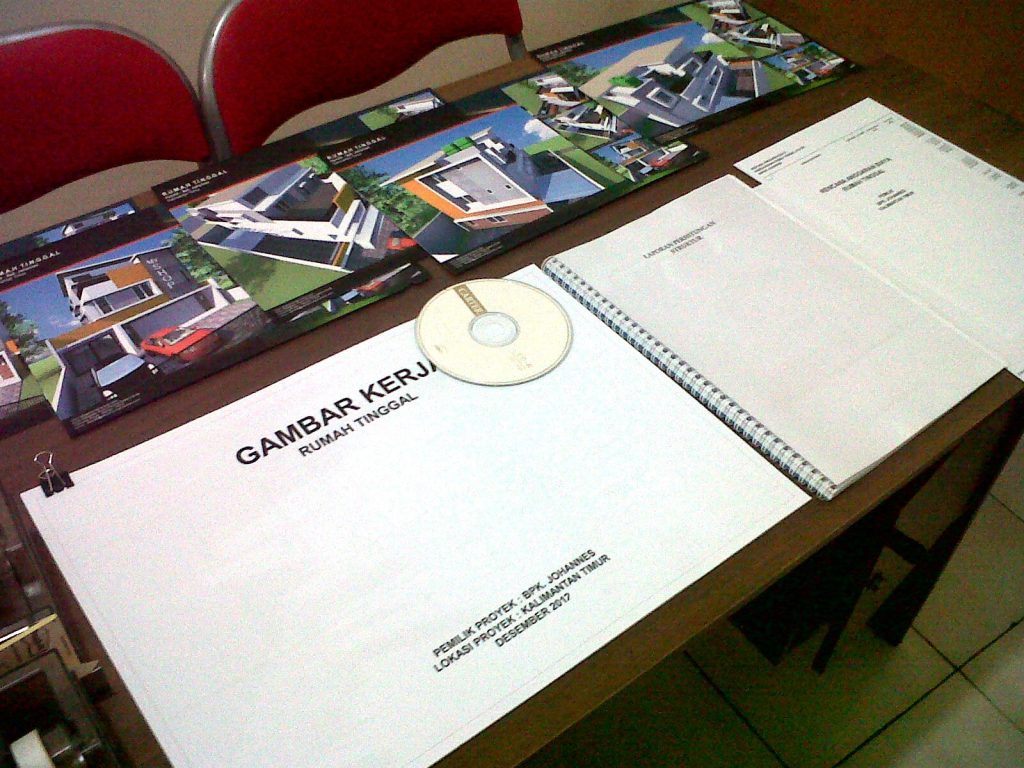 Satu jilid gambar kerja siap bangun (Struktur, Arsitek, Listrik, Plumbing, Kusen Pintu dan Jendela, Detil-Detil, dll.) tercetak A3.